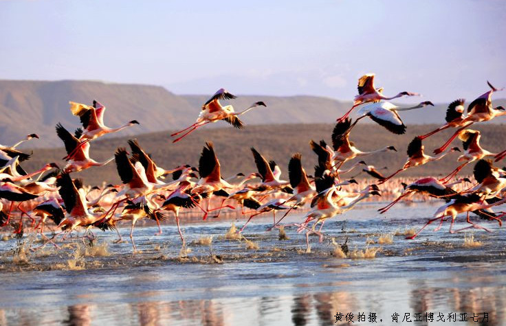 位于肯尼亚裂谷带边缘,是碳酸钙湖,而不是淡水湖,面积约有30平方公里,博高利亚湖就像它周边的湖一样,也是许多非洲火烈鸟的家。湖岸有相当多温泉,大多数都达沸点而且蒸气相当多,可以轻易的将鸡蛋在短时间内煮熟。此外,博高利亚湖中有相当多的蓝绿藻和矽藻,使得阳光在不同时间照射时,湖面会呈现出不同的颜色,如黄色、粉红色和紫红色等。湖水周围由矮树和草丛包围,里面有斑马、水牛、小羚羊等多种野生动物。游客在保护区内,可选择漫步、露营和游船等多种方式,欣赏博高利亚湖的美丽。博高利亚湖是观看火烈鸟最佳的地方,且湖边酒店为spa酒店,游客可以免费泡温泉,洗去旅途疲劳。